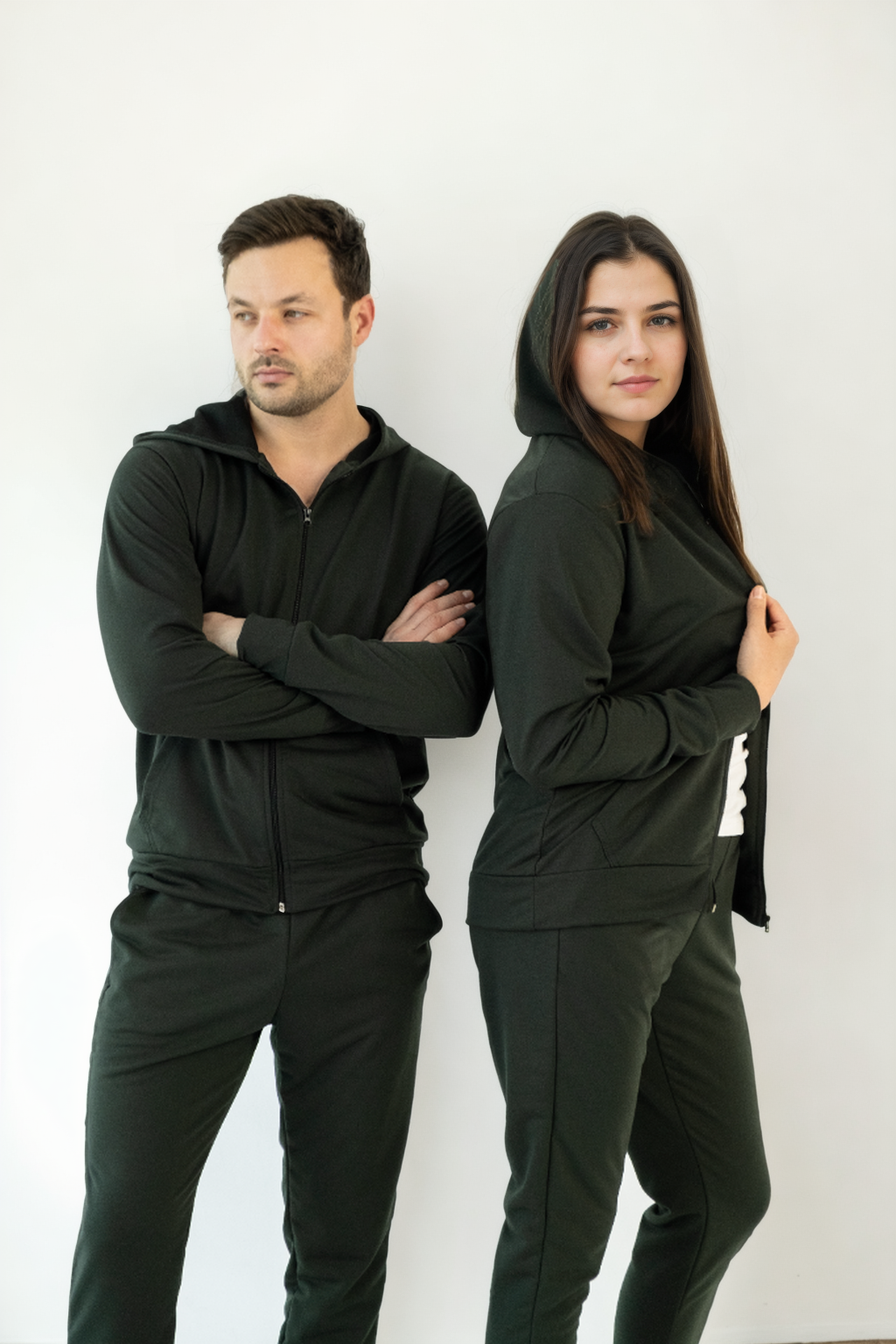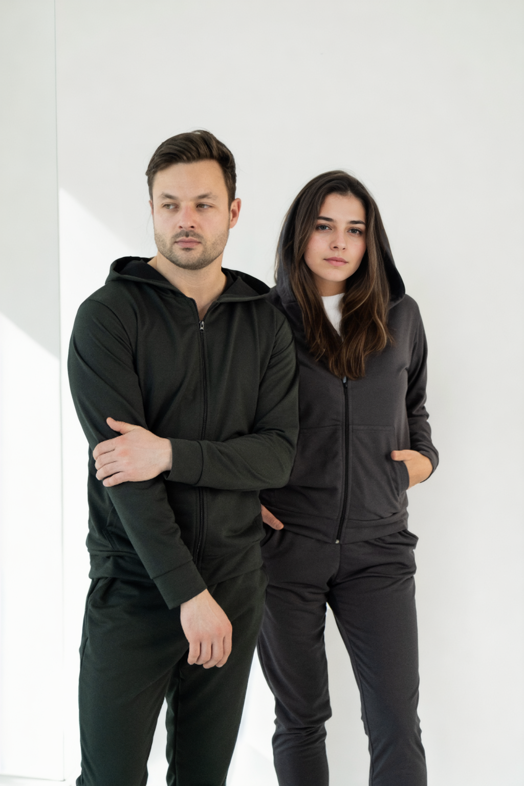 Чоловічі та жіночі костюми: чорний, хакі та графіт