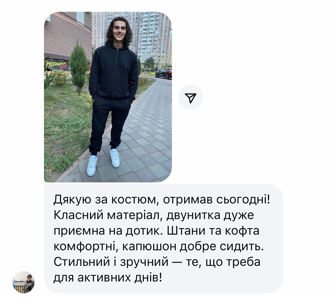 - Залиште ваш номер телефону та ім'я, оберіть комплект та розмір.