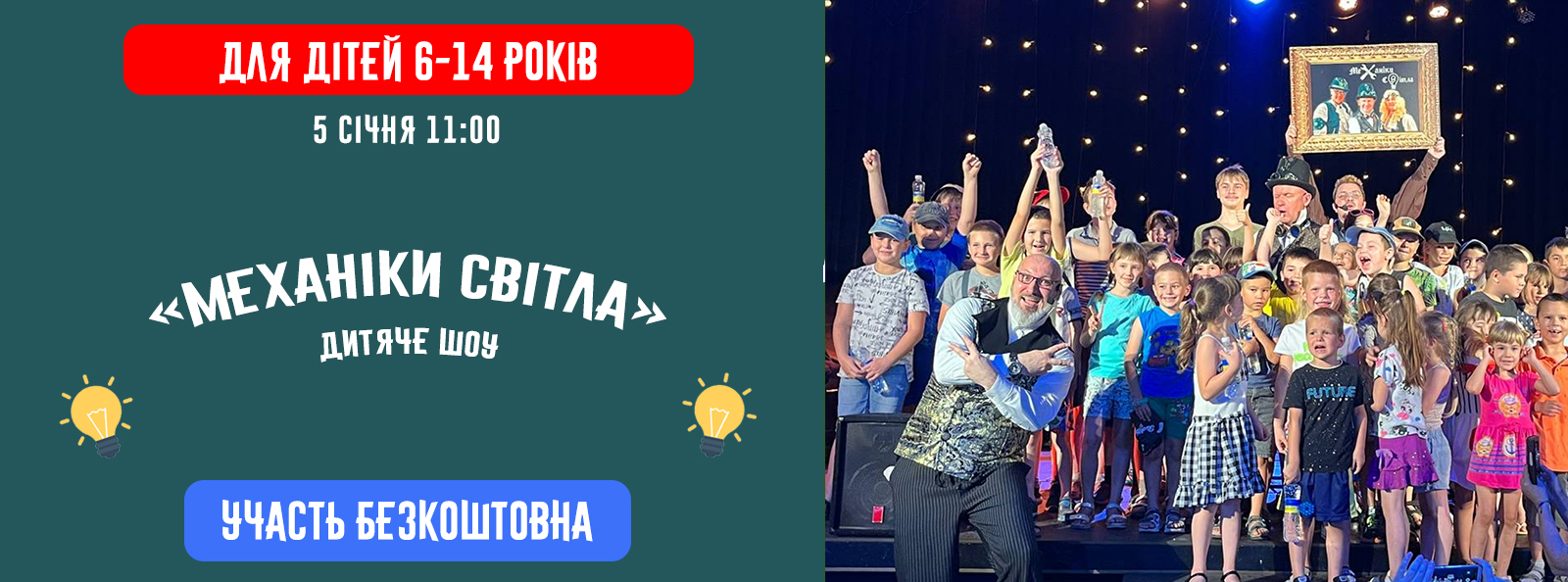 - Вистава у форматі наукового шоу з безпечними експериментами.