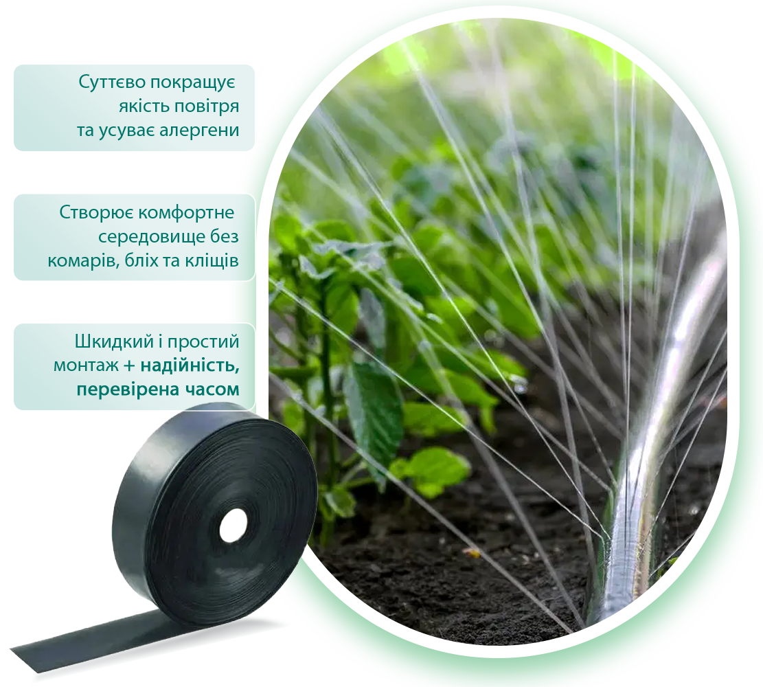 На 8-12 °С знижує температуру повітря навіть у найбільш спекотні дні!